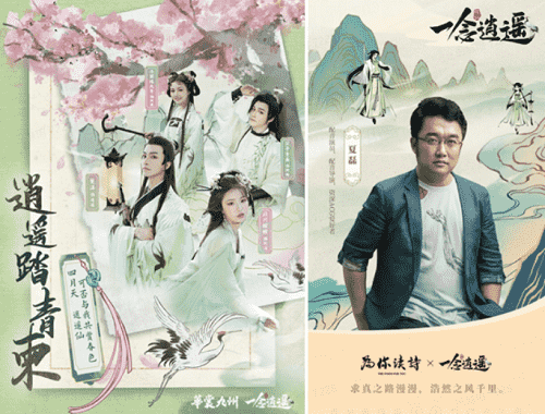 在游戏之外,,,《一念逍遥》一直致力于打造国风修仙原创IP,,以音乐、、漫画,,,小说等衍生内容去延展丰富游戏内容。。。上线以来,,,整整做了十首歌,,,,小说应该也是喜马拉雅平台今年游戏品类小说收听量Top1的作品;而在营销的内容传播上,,《一念逍遥》也一直秉承比较国风的基调,,,,传递诗词、、、文化内涵,,,如如清明节定制汉服合作,,,传递中国传统的清明踏青、、、清明诗会文化。。。。