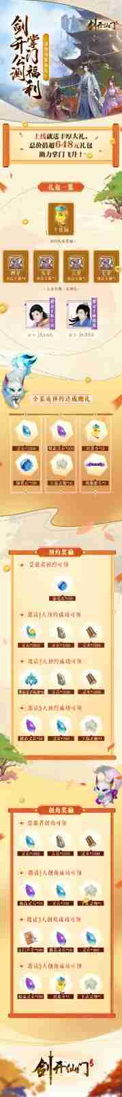 游戏为大家准备了海量的福利,,,包括上线即可获得的全渠道预约礼包、、、十连抽等福利,,,,输入密令“JK666”、、“JK888”即可领取紫色弟子,,达到金丹期后还有功法宝箱可领,,,,助力全宗上下实力提升……所有奖励总价值超过648元,,而邀请好友一起体验,,,,更可以获得额外的奖励哦~