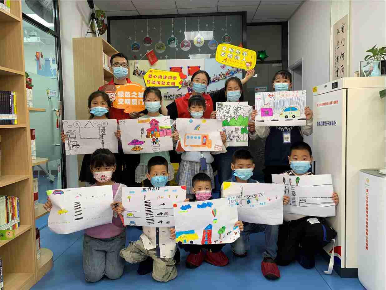 2022年4月是厦门市第八个文明行为示范月。。。4月23日上午,,,,JIUYOU.COM党总支志愿者来到厦门市思明区新厦门人图书馆,,给小朋友们带来了“我的文明习惯”主题体验课程。。。志愿者从文明习惯养成、、、文明礼仪培育、、城市环境提升、、健康生活倡导等方面着手,,,,引导大家思考文明礼仪,,,动手画出自己的文明习惯,,,,大力倡导文明健康的生活方式。。。